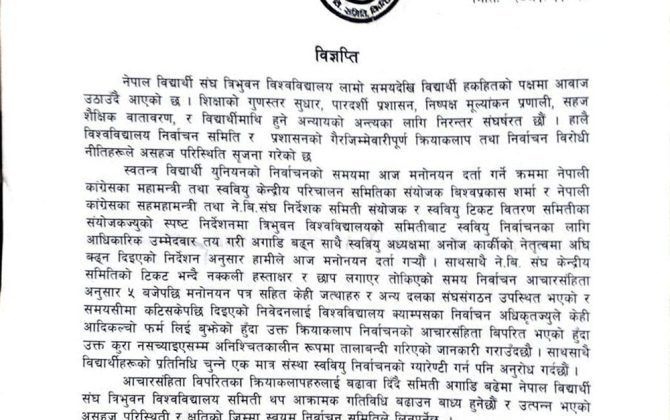 देशभरका ८४ क्याम्पसमा स्ववियुको नेतृत्व निर्विरोध