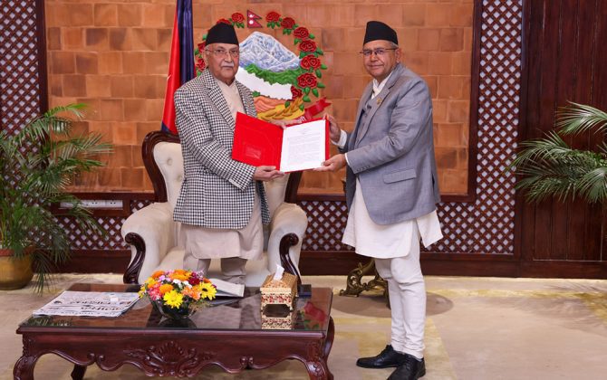 अन्तर–व्यवस्थापिका मञ्चको घोषणापत्र प्रधानमन्त्री ओलीलाई हस्तान्तरण