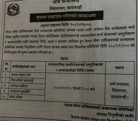 पुरा पढ्नुहोसबिमा प्राधिकरणको अध्यक्षका लागि ५ जनाको नाम सर्टलिस्ट