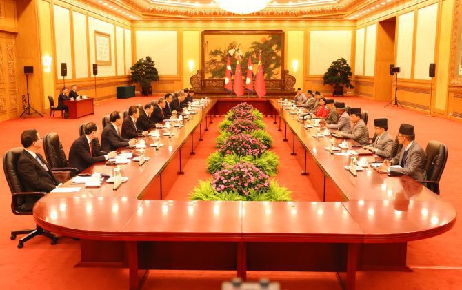 प्रधानमन्त्री ओली र चिनियाँ राष्ट्रपति बिच भेटबार्ता