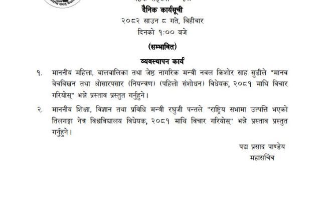 पुरा पढ्नुहोसप्रतिनिधिसभा बैठक बस्दैँ, यस्तो छ सम्भावित कार्यसुची