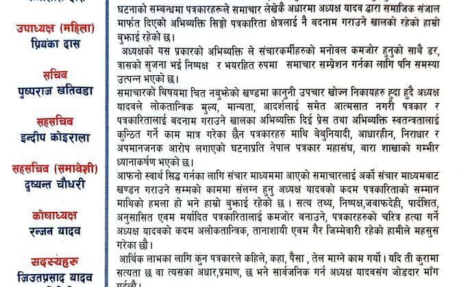 पुरा पढ्नुहोससुवर्ण गाउँपालिका अध्यक्षको अभिव्यक्तिप्रति पत्रकार महासंघ बाराको आपत्ति