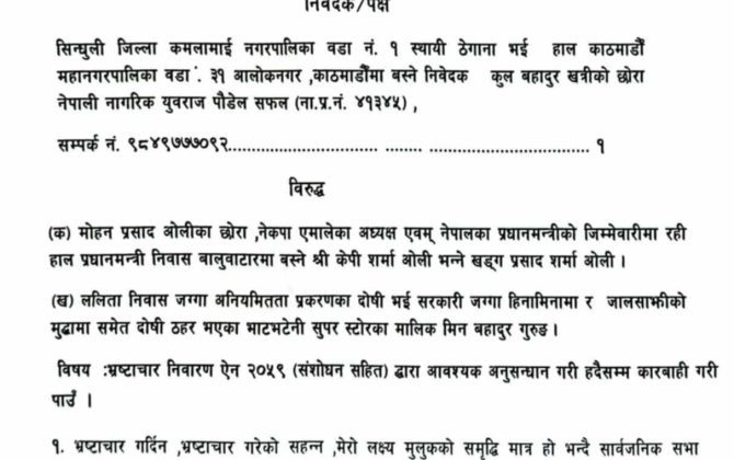 पुरा पढ्नुहोसप्रधानमन्त्री ओली र व्यवसायी गुरुङविरुद्ध अख्तियारमा उजुरी