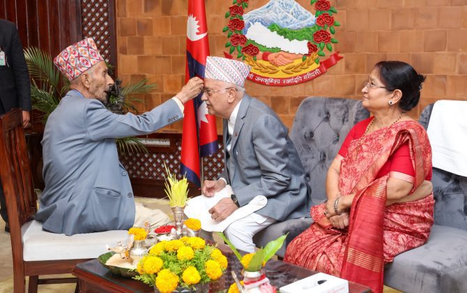 प्रधानमन्त्री ओलीले लगाए विजयादशमीको टीका