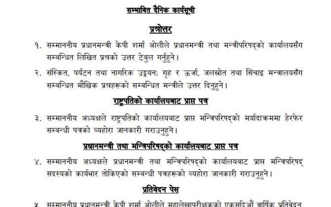 राष्ट्रिय सभाको बैठक आज बस्दै, प्रधानमन्त्रीले उत्तर टेबुल गर्ने
