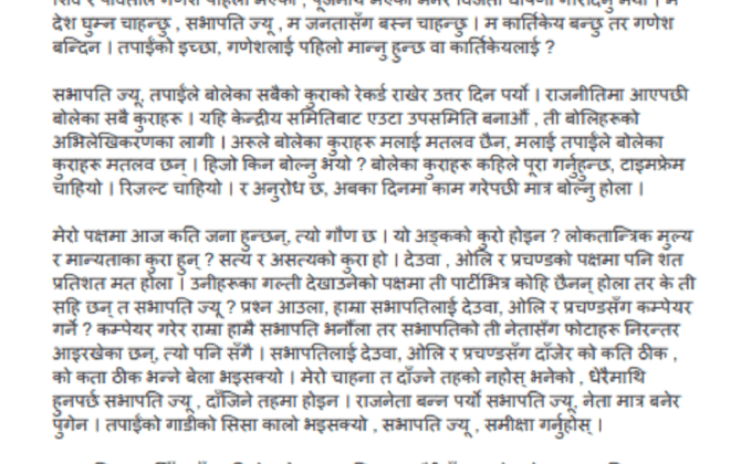 पुरा पढ्नुहोसकाठमाडौँ । राष्ट्रिय स्वतन्त्र पार्टी (रास्वपा) का महामन्त्री डा. मुकुल ढकालले पार्टीको केन्द्रीय समिति बैठकमा पेश गर्न तयार गरेको प्रस्तावमा आफुमाथि लागेका आरोपको जावफ दिएका छन् ।प्रेमिकालाई सांसद बनाएको भन्ने आरोपको जवाफ दिदै ढकालले प्रस्तावमा