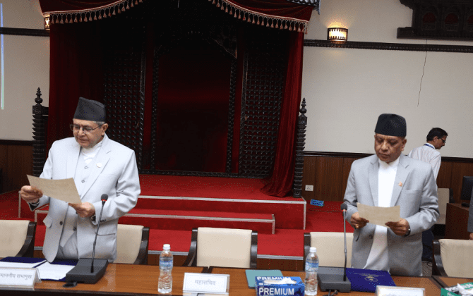 पुरा पढ्नुहोसकाठमाडौं । प्रतिनिधिसभाको सचिवमा नियुक्त सुरेश अधिकारीले पद तथा गोपनियताको शपथ लिएका छन् । बुधबार सभामुख देवराज घिमिरेले अधिकारीलाई पद तथा गोपनियताको शपथ गराएका हुन् ।सभामुख देवराज घिमिरेको सिफारिसमा राष्ट्रपति रामचन्द्र पौडेलले मंगलबार अधिकारीलाई