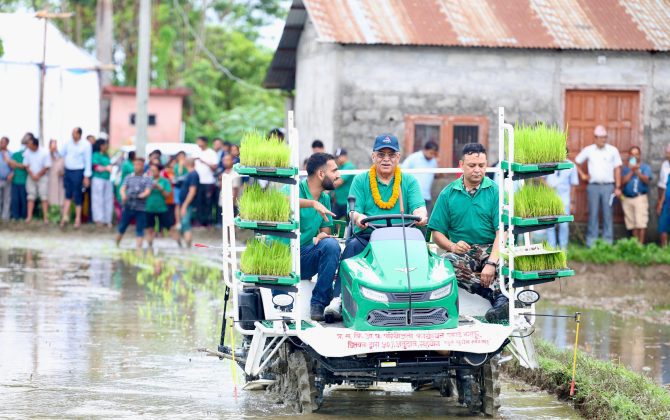 पुरा पढ्नुहोसकाठमाडौं । प्रधानमन्त्री पुष्पकमल दाहाल‘प्रचण्ड’ले चितवनमा मेसिनबाट धान रोपेका छन् ।प्रधानमन्त्री प्रचण्डले चितवनको रत्ननगरमा आयोजित २१औँ राष्ट्रिय धान दिवस तथा रोपाइँ महोत्सव, २०८१ का अवसरमा सौराहास्थित बच्छौलीमा पुगेर बहुउद्देश्य कृषक समुहको खेतमा मेसिनको प्रयोग