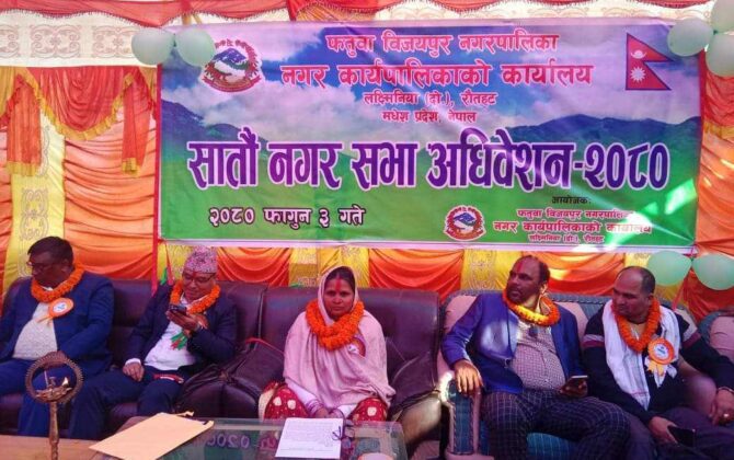 पुरा पढ्नुहोसरौतहट। लामो रस्साकसी पछी रौतहटको फतुवा विजयपुर सातौं नगरसभा सम्पन्न भएको छ। ४८ करोड भन्दा बढीको बजेट पारित गर्दै फतुवा बिजयपुर नगरपालिकाको सातौं नगरसभा सम्पन्न भएको हो। कार्यवाहक मेयर अम्बेया खातुनको अध्यक्षतामा फतुवा विजयपुरको