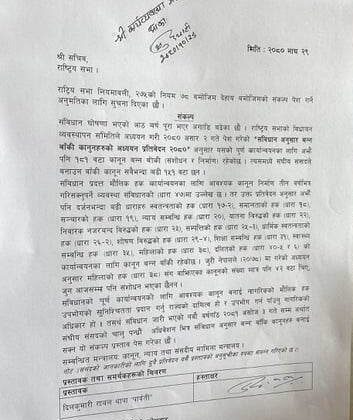 कानुन यथाशीघ्र निर्माणका लागि संकल्प प्रस्ताव दर्ता