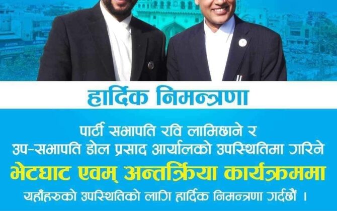 पुरा पढ्नुहोसकाठमाडौं । राष्ट्रिय स्वतन्त्र पार्टीका सभापति रवि लामिछाने भारत जाँदैछन । सभापति रवि लामिछाने दुई दिनसम्म भारतमा रहनेछन भने उनी १५ गते स्वदेश फर्कने छन् । सो भ्रमणको क्रममा भारतका नेपाली शुभेच्छुकले आयोजना गरेको कार्यक्रममा