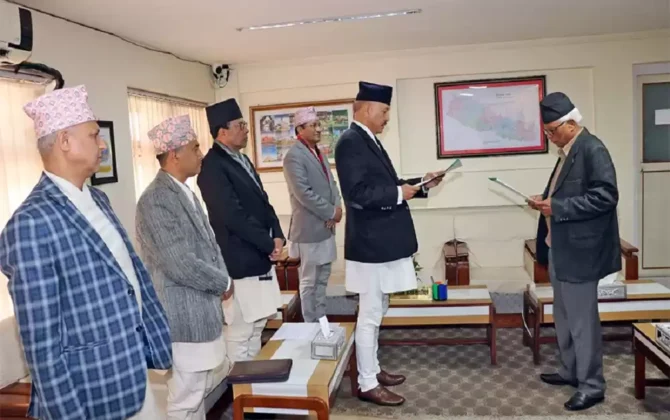 डेडिकेटेड र ट्रंक लाइन विवाद छानबिन आयोगका अध्यक्ष गिरिशचन्द्र लालद्वारा शपथ ग्रहण