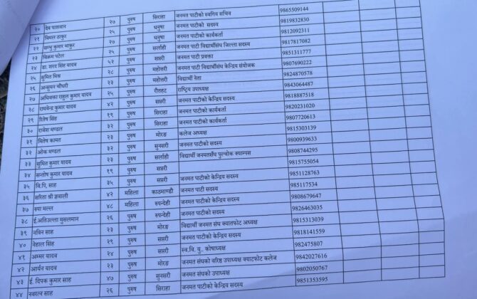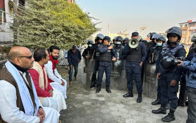 पुरा पढ्नुहोसकाठमाडौं। संघीय मामिला तथा सामान्य प्रशासनमन्त्री अनिता देवी, जनमत पार्टी अध्यक्ष सिके राउतसहित ५३ जना पक्राउ परेका छन् । ‘राष्ट्रिय धोती दिवस’ भन्दै निकालिएको ¥याली निषेधित क्षेत्र माइतीघरमा प्रवेश गर्न खोजेपछि प्रहरीले उनीहरुलाई नियन्त्रणमा लिएको
