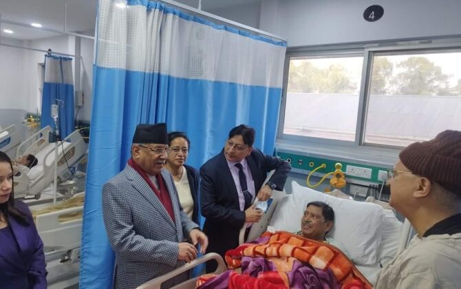 काठमाडौं। प्रधानमन्त्री पुष्पकमल दाहाल प्रचण्ड गंगालाल अस्पतालमा उपचाररत उपप्रधान तथा गृह मन्त्री नारायणकाजी श्रेष्ठलाइ भेटन पुगेका छन । हिजो राती गृहमन्त्री श्रेष्ठले छातीमा असहज महसुस गरे पछि नियमित स्वास्थ्य परिक्षणको क्रममा गंगालाल हृदयरोग केन्द्रमा