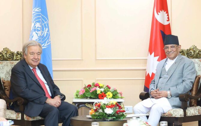 प्रधानमन्त्री प्रचण्ड र संयुक्त राष्ट्रसंघका महासचिव गुटेरेसबीच भेटवार्ता