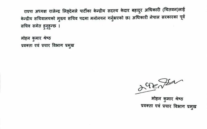 पुरा पढ्नुहोसराप्रपाको मुख्यसचिवमा केदारबहादुर अधिकारी मनोनीत
