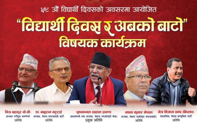 पुरा पढ्नुहोसबिद्यार्थी एकता दिवसमा पाँच बामपन्थी नेता एउटै मञ्चमा देखिने