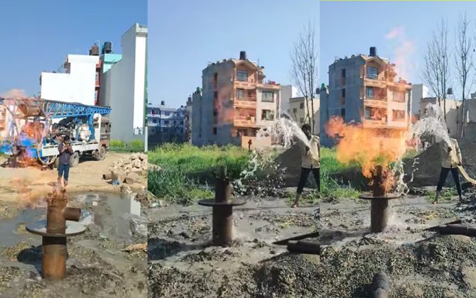 ललितपुरको टिकाथलीमा पानीको बोरिङ खन्दा निस्कियो आगो
