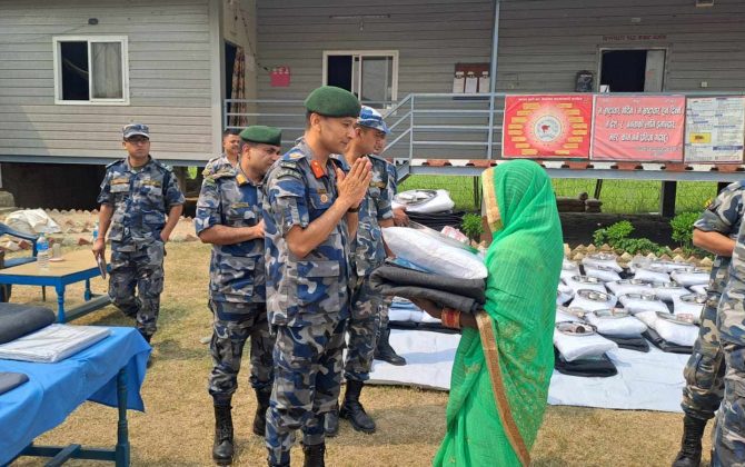 पुरा पढ्नुहोससर्लाही । सर्लाही जिल्लाको विष्णु गाउँपालिका–१ स्थित बारा उद्योरण बस्तीका आगलागी पीडितहरुलाई बैशाख २२ गते सशस्त्र प्रहरी बल नेपाल नं. २ छिन्नामस्ता बाहिनी मुख्यालय महोत्तरीले राहत वितरण गरेको छ । बाहिनीपति सशस्त्र प्रहरी नायव महानिरीक्षक