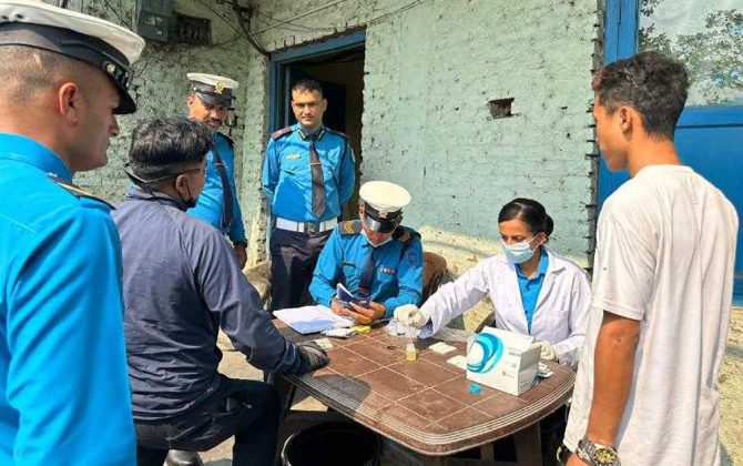 पुरा पढ्नुहोसकाठमाडौँ । काठमाडौंको नागढुङ्गाबाट लागुपदार्थ सेवन गरी सवारी साधन चलाउँदै गरेका ६ जना चालकहरूलाई शुक्रबार ट्राफिक प्रहरीले नियन्त्रणमा लिएको छ । ना ६ ख ६१२७ नम्बरको ट्रकका चालक ३१ वर्षीय भिमसेन कोइराला, बागमती प्रदेश-०१-०२९ च