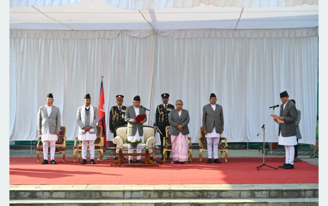 पुरा पढ्नुहोसकाठमाडौँ, नवनियुक्त परराष्ट्रमन्त्री बालानन्द शर्माले राष्ट्रपति रामचन्द्र पौडेलसमक्ष पद तथा गोपनीयताको शपथ लिनुभएको छ । राष्ट्रपति कार्यालयमा आज आयोजित विशेष समारोहमा उहाँले शपथ लिनुभएको हो ।प्रधानमन्त्री सुशीला कार्कीले शर्मालाई आजै परराष्ट्रमन्त्रीमा नियुक्त गर्नुभएको हो