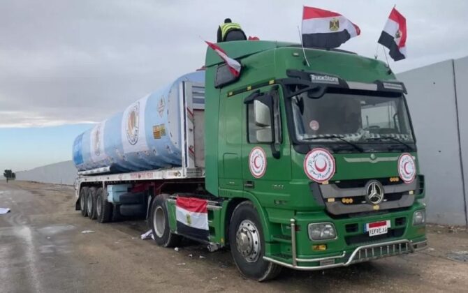 गाजा। इजरायल र हमासबीच युद्धबाट विस्तापित प्यालेस्टाइनीहरूका लागि आधारभूत आवश्यकताकका वस्तु बोकेका २४ वटा ट्रक गाजामा प्रवेश गरेका छन् । गाजा पट्टीको दक्षिणी भागमा कठिन परिस्थितिहरूको सामना गरेका मानिसका लागि  आधारभूत आवश्यककता वस्तु बोकेका २६