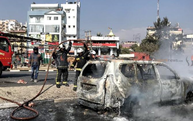 काठमाडौं। आन्दोलनकारीको एउटा समुहले भौतिक पुर्वाधार मन्त्री प्रकाश ज्वालाको गाडी जलाएका छन् ।बालकुमारी कोटेश्वर क्षेत्रमा मन्त्री ज्वालाका गाडी जलाए पछि स्थीति तनावग्रस्त बनेको छ । कोरिया जान नपाएका युवाहरूको एक समुहले गाडी जलाएको बताईएको छ। सो