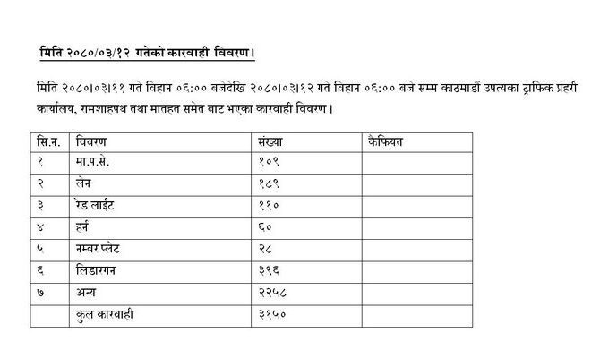 पछिल्लो २४ घन्टामा ३१ सय बढी सवारी साधान ट्राफिक कारबाहीमा
