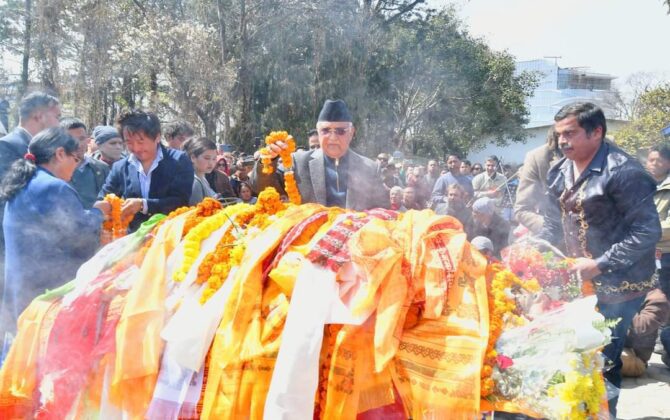 पुरा पढ्नुहोसनेकपा। एमालेका अध्भयक्ष केपी शर्मा ओली भजन शिरोमणी भक्तराज आचार्यलाई श्रद्वाञ्जली अर्पण गर्न पुगेका छन्।