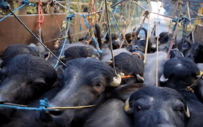 चितवन । राँगाभैँसीलाई ट्रकमा हालेर ढुवानी गरिने दृश्य तपाईँ हामीले प्रायजसो सडकमा वारपार गर्दा देखिरहने एउटा दृश्य हो । न्युनतम मापदण्ड पालना नगरी पशुहरुलाई पीडा दिएर पुच्छर र नाकमा बाँधेर ढुवानी गरिन्छ जुन गैरकानुनी