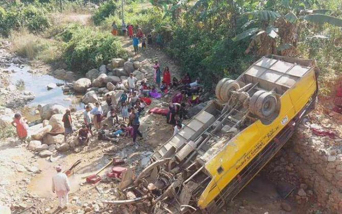 पुरा पढ्नुहोसकाठमाडौं । उदयपुरमा स्कुल बस दुर्घटना हुँदा तीन जनाको ज्यान गएको छ। उदयपुरको त्रियुगा नगरपालिका-५ देउरीको एक निजी विद्यालयको बस भाडामा लिएर स्थानीय बासिन्दा वनभोज गएका थिए। उनीहरू सवार बस दुर्घटना हुँदा तीन जनाको घटनास्थलमै