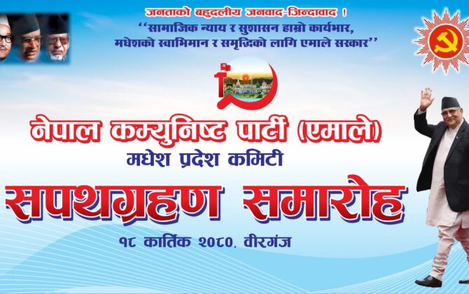 पुरा पढ्नुहोसबिरगञ्ज, १८ कार्तिक । नेकपा एमाले मधेस प्रदेशले भुकम्प पीडितका लागि ३ लाख सहयोग गर्ने भएको छ । गए राती जाजरकोटलाइ केन्द्रबिन्दु बनाएर गएको भुकम्प पीडितका लागि सहयोग स्वरूप तीन लाख सहयोग गर्ने भएको हो