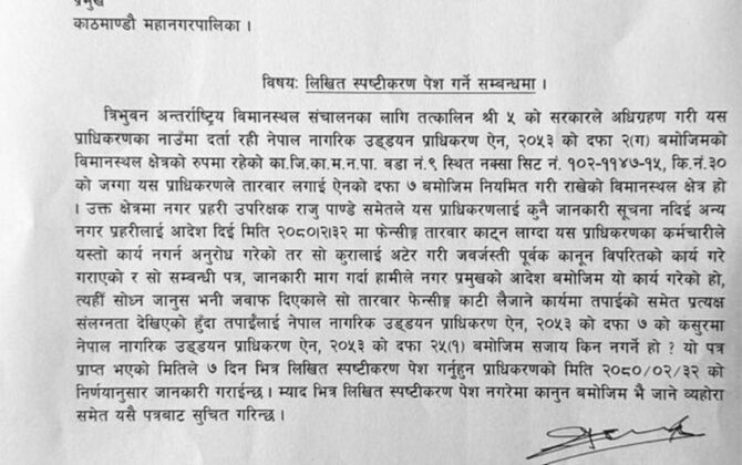पुरा पढ्नुहोसउड्डयन प्राधिकरणले सोध्यो महानगर प्रमुख बालेनलाई स्पष्टीकरण (पत्रसहित)