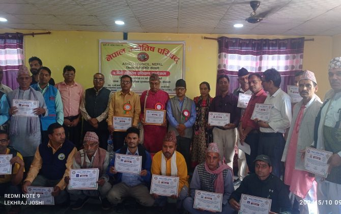 पुरा पढ्नुहोसअत्तरिया । नेपाल ज्योतिष परिषद् जिल्ला कार्य समिति कैलाली एवम् अत्तरियास्थित प्रतिभा सामुदायिक पुस्तकालयको संयुक्त आयोजनामा निःशुल्क ज्योतिष प्रशिक्षण कार्यक्रम सम्पन्न भएको छ। सात दिनसम्म चलेको प्रशिक्षण कार्यक्रम आज सम्मपन्न भएको हो। प्रतिभा सामुदायिक पुस्तकालयका