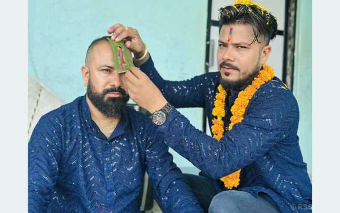 पुरा पढ्नुहोसदमौली (तनहुँ), तिहार दाजुभाइ र दिदीबहिनीको पर्व हो । यस पर्वमा दिदीबहिनीले दाजुभाइलाई टीका लगाएर दीर्घायूको कामना गर्छन् । तर तनहुँको व्यास नगरपालिका–१० सेवरका मदन र सुमन तिमिल्सिना दाजुभाइले एकापसमा भाइटीका लगाउनुभएको छ ।