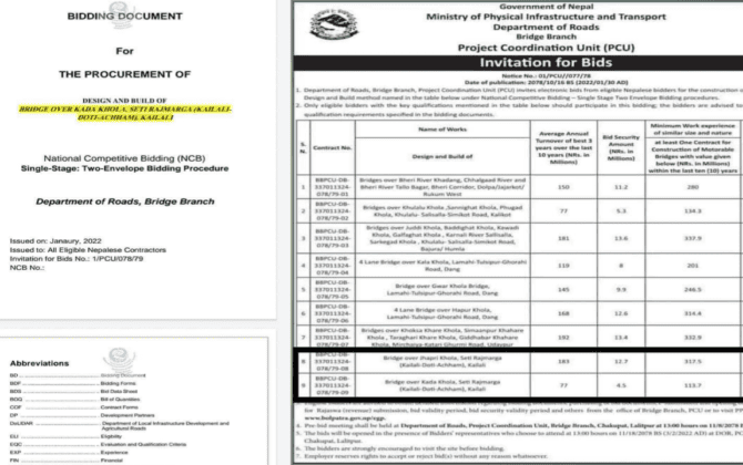 बौनियाँ, कैलाली-सेती लोक मार्ग अन्तर्गत पर्ने कैलालीको काँडा खोला र झाप्री खोलामा पक्की पुल निर्माण हुने भएको छ । जिल्लाको बर्दगोरिया गाउँपालिका वडा नम्बर ३ मा पर्ने काँडा खोला र मोहन्याल गाउँपालिकाको वडा नम्बर