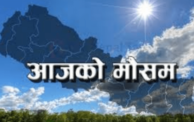 नेपाल/हाल देशमा पश्चिमी वायुको सामान्य प्रभाव रहेको छ। मौसम पूर्वानुमान महाशाखाका अनुसार हाल प्रदेश १ र प्रदेश २ लगायत अन्य प्रदेशका पहाडी भूभागमा आंशिक बदली र बाँकी भूभागमा मौसम सामान्यतया सफा रहेको छ। बंगालको खाडीमा