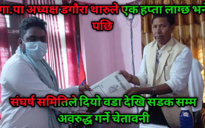 पुरा पढ्नुहोसआफ्ना मागहरुको सुनुवाई नभए थप संर्घसका कार्यक्रम ल्याउने बौनियाँ कैलाली । कैलालीको बर्दगोरिया गाउँपालिका वडा नम्बर ३ जनताहरु मोटर पुलको माग गर्दै विरोध जनाएका छन । “नेताबाट धेरै आश्वासन धेरै भए बाहाना, अहिले सम्म जनताको