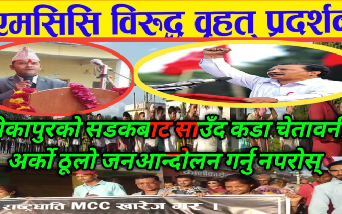 पुरा पढ्नुहोसबौनियाँ/कैलालीको टीकपुरमा एमसिसि विरुद्ध नेपाल कम्युनिष्ट पार्टीले विरोध प्रदर्शन गरेका छ ।विरोध प्रदर्शन टीकापुरको हाडबजार चोक हुदै खडक चोक बाट शुरू भएर टीकापुर बजार परिक्रमा गर्दै कान्छिबजार गल्लीमा आएर कोणसभामा परिणत भएको थियो।कोणसभालाई सम्बोधन