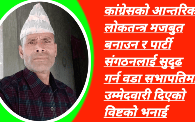 पुरा पढ्नुहोसबौनियाँ-नेपाली काँग्रेसका नेता तथा वडासभापति नन्दाराम बिष्टले १४ औं महाधिवेशनमा पूर्ण:वडा सभापतिमा आफ्नो उम्मेदवारी रहेकोे घोषणा गर्नुभएको छ । कैलालीको बर्दगोरिया गाउँपालिका वडा नम्बर ३ को वडास्तरीय भेलामा वडा सभापतिमा बिष्टले आफ्नो उम्मेदवारी रहेकोे घोषणा