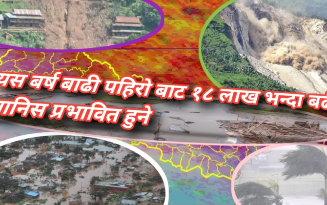 पुरा पढ्नुहोसनेपाल/मनसुन भित्रिनै लागेको नेपालमा यसपालि मनसुनजन्य विपद् ९मुख्यगरी बाढी पहिरो बाट १८ लाख बढी मानिस प्रभावित हुने अनुमान गरिएको छ। गत वर्ष औषत बराबर पानी पर्ने प्रक्षेपण हुँदा ठूलो मानवीय क्षति बेहोरेको मुलुकसामु सरदरभन्दा बढी
