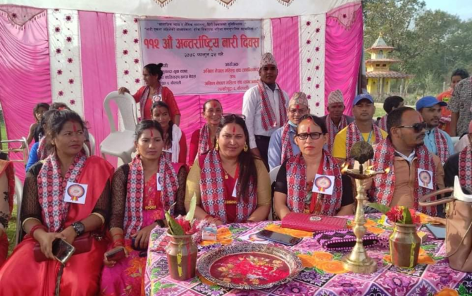 पुरा पढ्नुहोसकैलाली-नेकपा (माओवादी केन्द्र) सुदूरपश्चिम प्रदेश कमिटी सदस्य एवम् महिला नेतृ बिष्ना बिसी (सपना)ले घरघरमा महिला सम्मानित नहुँदा सम्म सभ्य समाज नबन्ने बताएकिछन् । लम्कीचुहा नगरपालिका ६ चैनपुरमा मंगलबार भएको १ सय १२ औं अन्तराष्ट्रिय