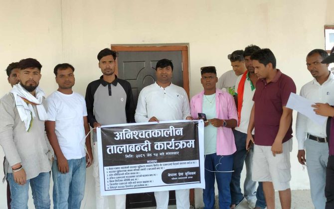 पुरा पढ्नुहोसनवलपरासी । नेपाल प्रेस युनियन पश्चिम नवलपरासी शाखाले सदस्यताको बिषयलाई लिएर ७ बुदें माग राख्दै नेपाल पत्रकार महासंघ नवलपरासी शाखामा अनिश्चितकालिन तालाबन्दी गरेको छ । युनियनलेनेपाल पत्रकार महासंघको सदस्यता शुद्धीकरण मापदण्ड बिपरित गैर पत्रकारलाई दिइएको