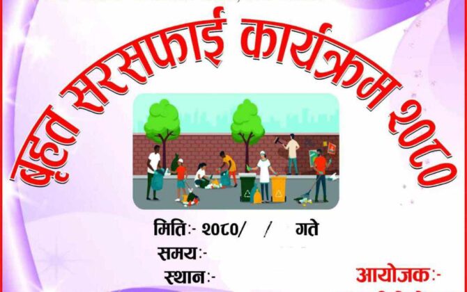 पुरा पढ्नुहोसकैलाली। कैलालीको बर्दगोरिया गाउँपालिका वडा नम्बर ५ मा रहेको सहयोगी बेलुवा युवा क्लबले भोलि शनिबारको दिन पालिका वडा नम्बर २ स्थित बर्दगोरिया धार्मिक स्थलमा सरसफाई गर्ने भएको छ। यस वर्ष २०८० को पहिलो पटक बर्दगोरिया