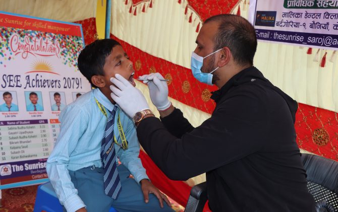 मालिका डेन्टल क्लिनिकद्वारा द सनराईज माध्यामिक विद्यालयमा दन्त शिविर