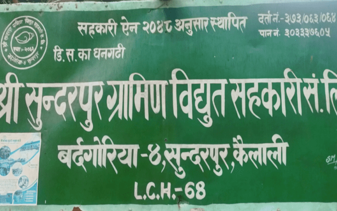 पुरा पढ्नुहोसबौनियाँ,कैलाली । जिल्लाको बर्दगोरीया गाउँपालिका वडा न:-४ मा रहेको सुन्दरपुर ग्रामीण बिद्युत सहकारी संस्थाको १४ औं वार्षिक साधारण सभा सम्पन्न भएकाे छ । शनिवार संस्थाका अध्यक्ष धर्म सिह बुढाको सभापतित्वमा भएको कार्यक्रमको प्रमुख अतिथि बर्दगोरीया