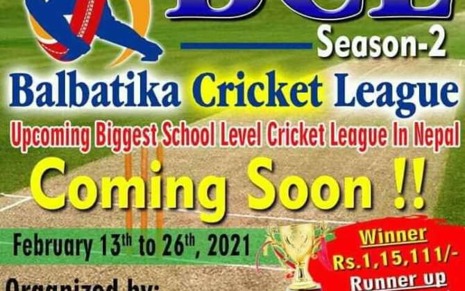 पुरा पढ्नुहोसबौनिया /कैलालीमा आउदो फागुन १ गते बाट सुरु हुने बाल बाटिका क्रिकेट लिग (बि.सि.एल सिजन (२)को तयारी तिव्र पारियको आयोजकले जानकारी दियको छ। देश भरिका विभिन्न १६ बिधालयको सहभागिता रहने सो प्रतियोगिता १४ दिन सम्म