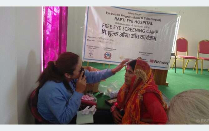 तुलसीपुर (दाङ), दाङको तुलसीपुर उपमहानगरपालिका–१२ हरिपौरीकी ५३ वर्षीया रस्मिता दाहालले यसअघि आँखा जाँच गर्नुभएको थिएन । तर, अहिले गाउँमै शिविर आएपछि जाँच गर्दा दाँया आँखामा मासु पलाएको रहेछ ।स्वास्थ्यकर्मीले उहाँलाई तत्काल शल्यक्रिया गर्ने सुझाव