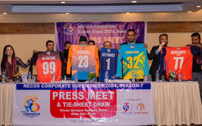 काठमाडौं। आगामी आइतबारदेखि सुरु हुने नेकोस कर्पोरेट सुपर सिक्सेस सिजन–७ को तयारी पूरा भएको छ। एसएस एभेन्ट्स प्राली र नेपाल खेलकुद महासंघ (नेकोस)को संयुक्त आयोजनामा उक्त प्रतियोगिता शनिबारदेखि तीन दिनसम्म हुँदै छ। शुक्रबार नक्सालमा पत्रकार