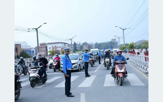 पुरा पढ्नुहोसकाठमाडौँ, काठमाडौँ उपत्यकामा सवारी दुर्घटनाको जोखिम न्यूनीकरण गर्ने उद्देश्यले ट्राफिक प्रहरीले काठमाडौँ उपत्यकामा नियम उल्लङ्घन गरेर सवारी चलाउने चालकविरुद्ध कडा निगरानी तथा कारबाही अभियान सुरु गरेको छ । पछिल्ला दिनहरूमा बढ्दो सवारी दुर्घटनाका मुख्य